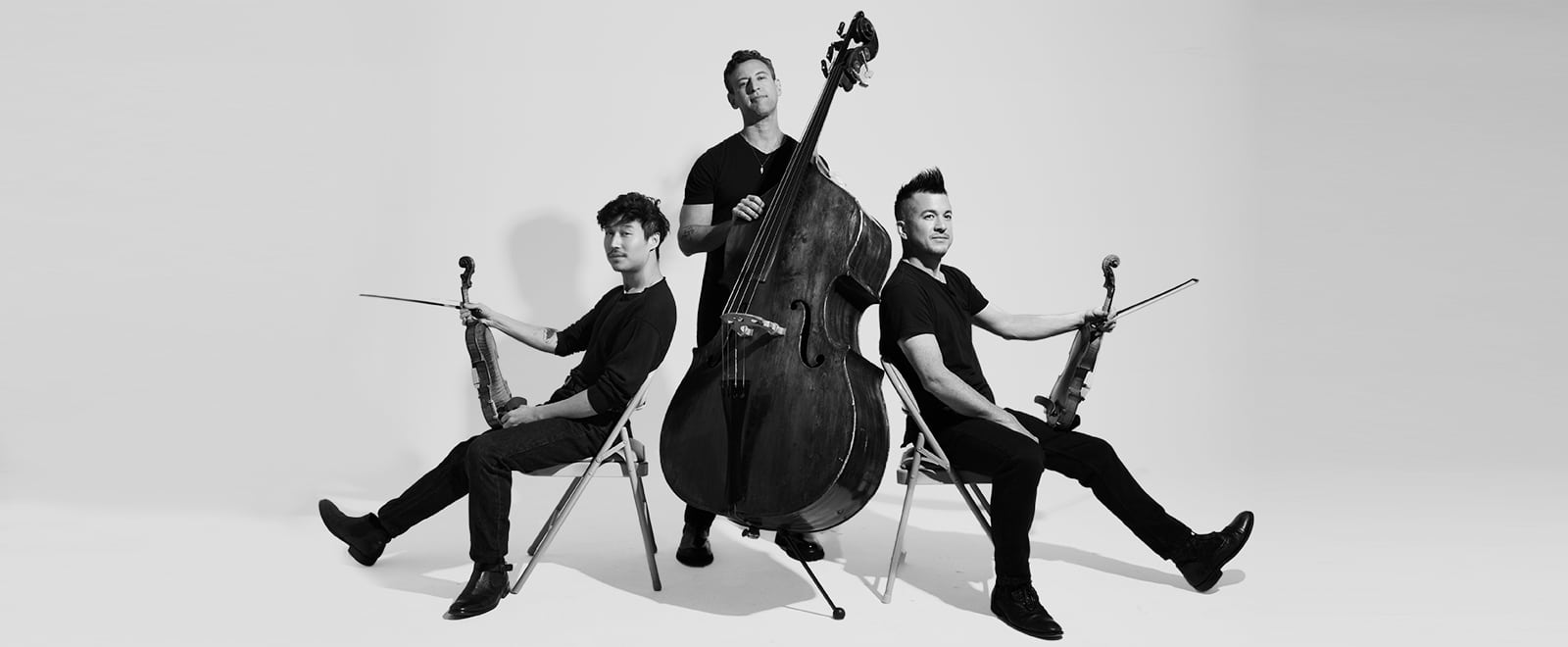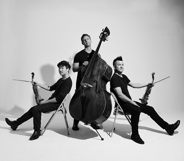 Grammy and Emmy-winning ensemble Time for Three (TF3) defies convention and boundaries, merging classical, Americana, and singer-songwriter traditions into a singular, remarkable sound. Consisting of Ranaan Meyer (double bass, vocals), Nicolas “Nick” Kenall (violin, vocals) and Charles Yang (violin, vocals), TF3 captivates audiences worldwide with their virtuosic playing and insatiable appetite for creativity that expands typical perceptions of a string trio.
